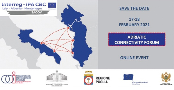 Da mercoledì 17 a giovedì 18 febbraio 2021 si svolgerà esclusivamente online l'evento dal titolo “Forum della connettività Adriatica - promuovere la connettività nell'Area del Sud Adriatico”.