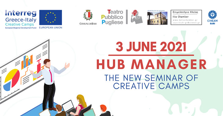 Partirà il prossimo 3 giugno il corso dedicato ai manager di Hub organizzato nell'ambito del Progetto Creative camps e finanziato dal Programma Interreg V-A Grecia Italia 2014-20.