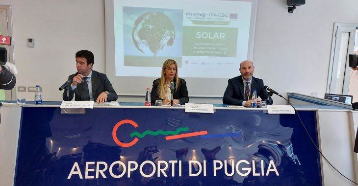 La cooperazione transfrontaliera si arricchisce di un nuovo progetto nel segno della mobilità sostenibile. Finanziato con 688 mila 500 euro dal Programma INTERREG IPA CBC Italia-Albania-Montenegro 2014-2020, “SOLAR - Sustainable reduction Of carbon footprint Level in programme AiRports”, vede Capofila la Regione Puglia-Dipartimento Mobilità, con la gestione affidata alla Sezione Infrastrutture per la Mobilità diretta dall’Ing. Irene di Tria, insieme ai partner Aeroporti di Puglia, Aeroporti del Montenegro, Autorità dell’Aviazione Civile dell’Albania, Agenzia Regionale per lo Sviluppo del Molise – Sviluppo Italia Molise.