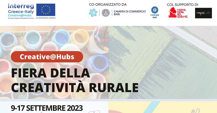 È attiva fino al 27 agosto 2023 la procedura per partecipare alla Fiera della Creatività Rurale promossa nell’ambito delle attività del progetto CREATIVE@HUBS del Programma Interreg Italia-Grecia.