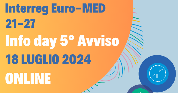 Nell'ambito del Programma Interreg Euro-MED 21-27, Regione Toscana, National Contact Point Italia, in collaborazione con Regione Campania, organizza l’Info day sul 5° avviso del Programma. L'evento si svolgerà il 18 luglio 2024, dalle ore 9,00 alle ore 13,00, esclusivamente in modalità videoconferenza. Per partecipare è necessario registrarsi a questo link.