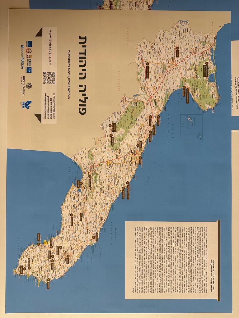Nel corso dell’incontro è stata presentata la Puglia Ebraica, mappa dei luoghi e degli itinerari della presenza ebraica in Puglia nel corso dei secoli a cura del Museo Ebraico di Lecce. La mappa è visionabile in forma interattiva sul sito www.jewishpuglia.com ma verrà anche distribuita cartacea in italiano, ebraico ed inglese.