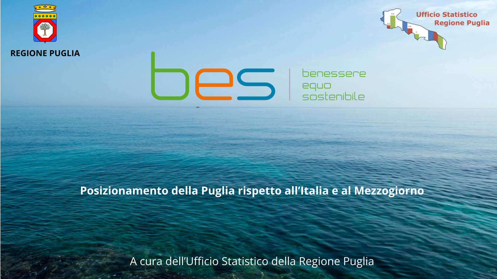 L’Ufficio Statistico della Regione Puglia mette a disposizione l’infografica aggiornata degli indicatori BES relativa al posizionamento della Puglia rispetto al Mezzogiorno e all'Italia cliccando sull'immagine che segue (dati di Aprile 2025).